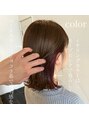 イヤリングブリーチ1回施術、イヤリングカラーモーブピンク・ベースカラーショコラカラー×ミディアムボブ