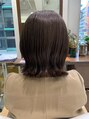 外はねボブスタイル。もちろん内巻きにしてもかわいい人気のボフ!顔周りを作る事で結んでもかわいいスタイルに!春に向けて少しトーンアップしアッシュカラーで軽めのイメージに。
