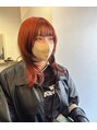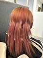 毛先はピンクがのっている状態で根本はピンクが抜けてオレンジっぽい状態です。ピンクにベージュを乗せて根本と彩度と明度を合わせて、オレンジをのせました。難しいシチュエーションでしたが綺麗なオレンジになりました。