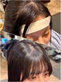 生えクセがあり、前髪が分かれてしまうケースにクロスパーマで思い通りの前髪を作ります◎[前髪/前髪カット/前髪縮毛/クロスパーマ/縮毛矯正/癖毛対応/クセ毛カット/ストレート/ストレートパーマ/コスメストレート/サイドバング/シースルーバング/韓国ヘア]