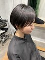 - カットカラー、マッシュショート、ダークグレー