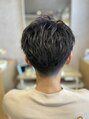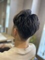 バリカンを使わず、丁寧にシザーでグラをつけながら刈り上げてます。セットしやすいようにニュアンスパーマで立ち上がりと束間をプラス。ビジネススタイルにもオススメです。