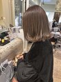 ブリーチでハイライト入れたグレージュカラーが可愛い、くびれミディアムボブです。