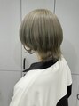 ウルフカットでお顔周りがポイント!カラーはベージュカラーをベースに毛先に少しグリーンのメッシュを入れました!とってもおしゃれなスタイルです♪ インナーカラー/トリートメント/ハイライト/透明感カラー/白髪ぼかし/ショート/イヤリングカラー/髪質改善