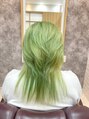 長さは欲しいけど軽さも欲しい方におすすめ!ロングレイヤー!レイヤーを入れた場所を中心に動きが生まれるので垢抜け効果抜群!動きのある髪でふんわりおしゃれヘア!カラーはブリーチ2回にライムグリーンで春っぽく!