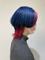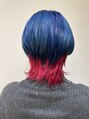 バツっとカットラインがクール!ウルフを活かして表面はビビッドブルー襟足はビビッドレッド