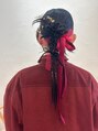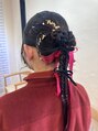 編み込みローポニーテールヘアセットリボン金箔顔周り