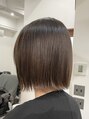 - ハイトーンカラー 前髪パーマ ぱっつん前髪 ボブパーマ アースカラー