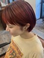 ツヤとまとまりのある人気の暖色カラーにコンパクトに収まるショートボブ。ケアカラーを使ってるので髪質も良く、色もちもいいです!