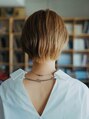 柔らかさと丸みのある大人ショート。首元がスッキリ見えるよう襟足を短くしボーイッシュになりすぎないよう、重さを残し丸みを出すことで女性らしいスタイルになります。前髪はシースルーにすると顔まわりが明るくなるのでオススメです。