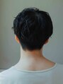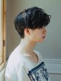 流行りのセンターパートスタイル。サイドはツーブロックに、後ろは刈り上げから繋げてタイトに。耳まわりはスッキリさせて、前髪は頬骨あたりの長さでカット。パーマはスパイラルに巻いて、ウェットな状態でスタイリング。
