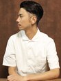 ベースは前髪長めのツーブロックの髪型。パーマをゆるくかけてトップのボリュームと毛流れを作る事でハチの膨らみを解消しています。ツーブロック部分にグラデーションをつける事で伸びてきても気になりにくくした30代40代の方にもオススメの大人の髪型です。