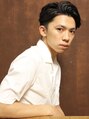 ベースは前髪長めのツーブロックの髪型。パーマをゆるくかけてトップのボリュームと毛流れを作る事でハチの膨らみを解消しています。ツーブロック部分にグラデーションをつける事で伸びてきても気になりにくくした30代40代の方にもオススメの大人の髪型です。
