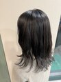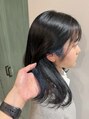 ハイライトにブルーでオンカラーしたヘアスタイルです。日々色味が変化していくので色落ちも楽しめるヘアスタイルです。レディースヘア/ミディアムヘア/黒髪/ハイライト/ダブルカラー/ローライト/イヤリングカラー/インナーカラー/ブルー/ディープブルー