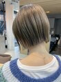- 表参道/表参道駅/ハイトーンカラー 前髪パーマ ぱっつん前髪 ボブパーマ アースカラー
