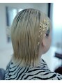 ブロンドボブ外はねアレンジヘア