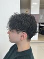 前下がりマッシュのセンターパートスタイルです。クリーム状の薬剤でかけた柔らかい質感にこだわった波巻きパーマをかけました。