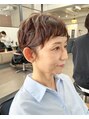 お客様スタイル☆ボブの長さからバッサリ、ベリーショートにカットしました♪元々のクセがパーマみたいで素敵だったので、活かしてカットしてます(^ ^)カラーはトップと前髪に細い白髪ぼかしハイライトを入れた後、アッシュグレージュに染めました!