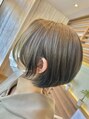 カットは扱いやすいショートボブ。短いスタイルでも朝のスタイリングも楽チン◎夜の乾かす時間も軽減してストレスフリーに!初めての方もチャレンジしやすいショートボブです! カラーは日本人特有の赤味を軽減するカーキーベージュで色持ち抜群です!