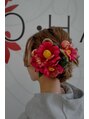 首元をすっきりさせたアップスタイルに仕上げました。ロープ編みを取り入れて左サイドにまとめ、ツバキのお花のお飾りで華やかな仕上がりになりました!