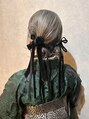 袴ヘアの個性派ツインアレンジ☆*。たっぷりリボンと水引、お顔周りにパールをカチューシャ風につけてトレンドアレンジに...♪