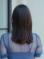 全体的に鎖骨あたりのハネない位置でカットしたナチュラルな大人な雰囲気のミディアムスタイルになります。顔まわりに後毛を作り、軽いレイヤーを入れることによって重過ぎない動きが出た軽い印象にしてくれます。