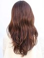 レイヤーをいれ、アイロンで動きをつけたスタイルです。巻きやすいように毛先は厚めにカットし、重たくなりやすいミドルセクションを多めにセニング。前髪は薄めにカットして柔らかさを出しています。