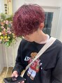 レッドカラー×波巻きパーマ