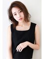 切りっぱなしのミディアムの外はねスタイルです。ナチュラルな大人っぽさがかわいいスタイルです♪