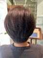 耳にかけてスッキリしたショートボブ。襟足はタイトな感じで、丸みを残し女性らしさを引立たせるショートスタイルです。
