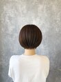 首元スッキリの丸みのあるショートスタイルです。カラーもくすみ感のあるブラウンカラーで柔らかい艶のあるカラーです。