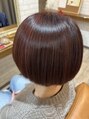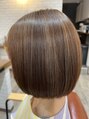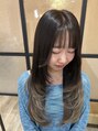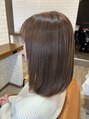 カットは伸ばしているので整えて、表面にハイライトを細かく入れてピンクベージュのカラーでオンカラー、根本はグレイカラーを使っています。