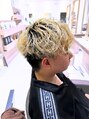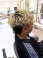 フルバング/ブリーチ毛に強めのパーマスタイル。地毛は直毛、太めの髪質です。ブリーチ履歴や、アイロンの使用履歴など、状態によりますがパーマがかかります。強めにかけるのがオススメです。