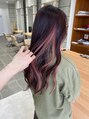 春らしく全体ピンクに、インナーブリーチしてるので、ピンクがより映えますね^^色落ちも可愛いと思います^^^^全体暖色は初めてみたいで、とてもお似合いでした!!女性目線でご提案させて頂きます♪