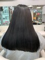 髪質改善METEOカラーアルカリ酸熱トリートメント以前ブリーチをしている。その部分を黒染め。METEOカラーとアルカリ酸熱を使う事でゴワつきがないしなやかな黒にすることが出来ている。