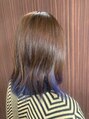 ブルー系のインナーカラー。レイヤースタイルのインナーカラーはチラッと見える感じがとてもお洒落!
