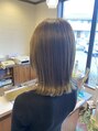 透明感あるオリーブベージュカラー。ぱつっといたラインに外ハネしやすいように毛量調整させていただきました^^