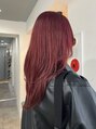 トップと顔周りに、たっぷりレイヤーを入れ、1ブリーチ後ワインレッドカラーに♪毛先ワンカール巻くだけで、雰囲気が出るスタイルです!