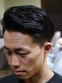 ナチュラルなパートスタイルです!サイドは6mmから分厚く刈り上げ、わざと角を少し残してます。肌が見えすぎないくらいの長さで刈り上げ、上の毛は少し長めに残してます。いかつくならないけど、男らしいのがポイントですね!