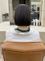 ミニボブ×オレンジブラウンで柔らかい印象に♪ほんのりピンクを入れる事で、全体に柔らかさを出しています◎ぷつっとしたミニボブと色味カラーはおしゃれで相性抜群です!是非一度ご相談下さい♪