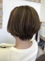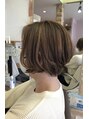 ロングからばっさりカット。毛量が多くサイドはハネたりする、生え癖があります。後頭部・耳後ろなどの毛量が固まる箇所は中にレイヤーを入れ切り込んでいます。トップからの柔らかな丸みを作り乾かしたらメリハリが付く様、スタイリングし易くしてあります。