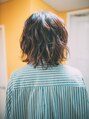 波ウェーブのニュアンスパーマスタイル!切りっぱなしのボブから無造作にカールがかかっていて可愛い雰囲気がでます。前髪のくるくる感がポイントです!勝手に動きが出るので、スタイリングもしやすいのがパーマのいいところです!