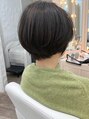 丸みがあるショートボブスタイルです♪後頭部にくびれを作り、乾かすだけでスタイリングしやすいようにしております。前髪は頬に掛かるくらいの長さで顔まわりも動きをつけてお顔もより小さく見えるようにいたしました。