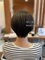 大人かわいい前下がりのショートボブはシャープに切ったライン、襟足をしめてスッキリ見せたりと、メリハリを効かせて絶妙なバランスに!カラーは、ナチュラルな"ベージュブラウン"で柔らかい雰囲気。