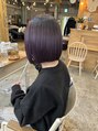 ブリーチ1~2回必要です紫は暗く見えやすい色ですので、明るく見せたい場合はブリーチ回数が増えます