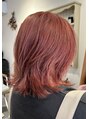 ブリーチで1度明るくした髪にイエローベースのお肌に合うピンクオレンジで春カラーに。