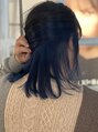 インナーカラーでカジュアルに♪ハチ下からはブリーチとオンカラーで綺麗なコバルトブルーに。ハーフアップにアレンジしてもとっても可愛いスタイルですね。