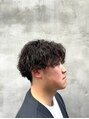 メンズに人気のツイストスパイラルパーマ。オンオフで切り替えられるように、前髪アップ/ダウンスタイルの2WayStyleです。ドライヤーで8割程度乾かし、ツヤの出るスタイリング剤を全体的に揉みこみ、散らして完成です。カールの動きや束感を自由に作れます!