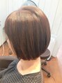 ショートベースの長さに、やや前下がりのグラデーションにカットして、質感毛量調整を施して、軽さと収まりを良くしています。カラーもベージュアッシュ系で染めて、超音波トリートメントもして色持ちとスタイルの持続性を上げています。