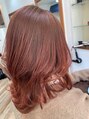 ツヤと透明感が魅力のカッパーピンク♪イルミナカラーでやわらかく発色し、ハホニコトリートメントでしっとりまとまる質感に。カットで動きをつけたセミロングは、女性らしさと華やかさを両立する大人かわいいスタイル。